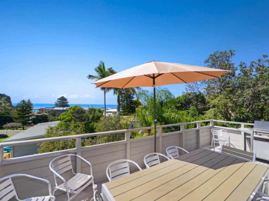 Copacabana Family Accommodation - Jewel on the Glade is only a one minute walk to Copacabana beach, flags and cafes! This great family beach house features a large open balcony equipped with outdoor setting for alfresco dining.